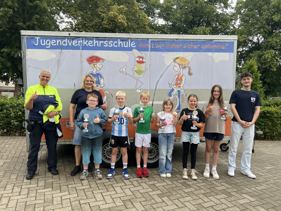 anspruchsvollen Parcours durchfahren haben, konnten Frau Melina Schnieders (Volksbank) und Frau Vera Spies (Polizei Steinfurt) die drei bestplatzierten Mädchen und Jungen auszeichnen.